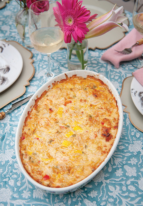 This is a fabulous centerpiece for any spring or summer menu, with Gulf shrimp, fresh squash, and Creole flavors. It may be served with a side of wild rice or simply a salad and French bread. Delicious!