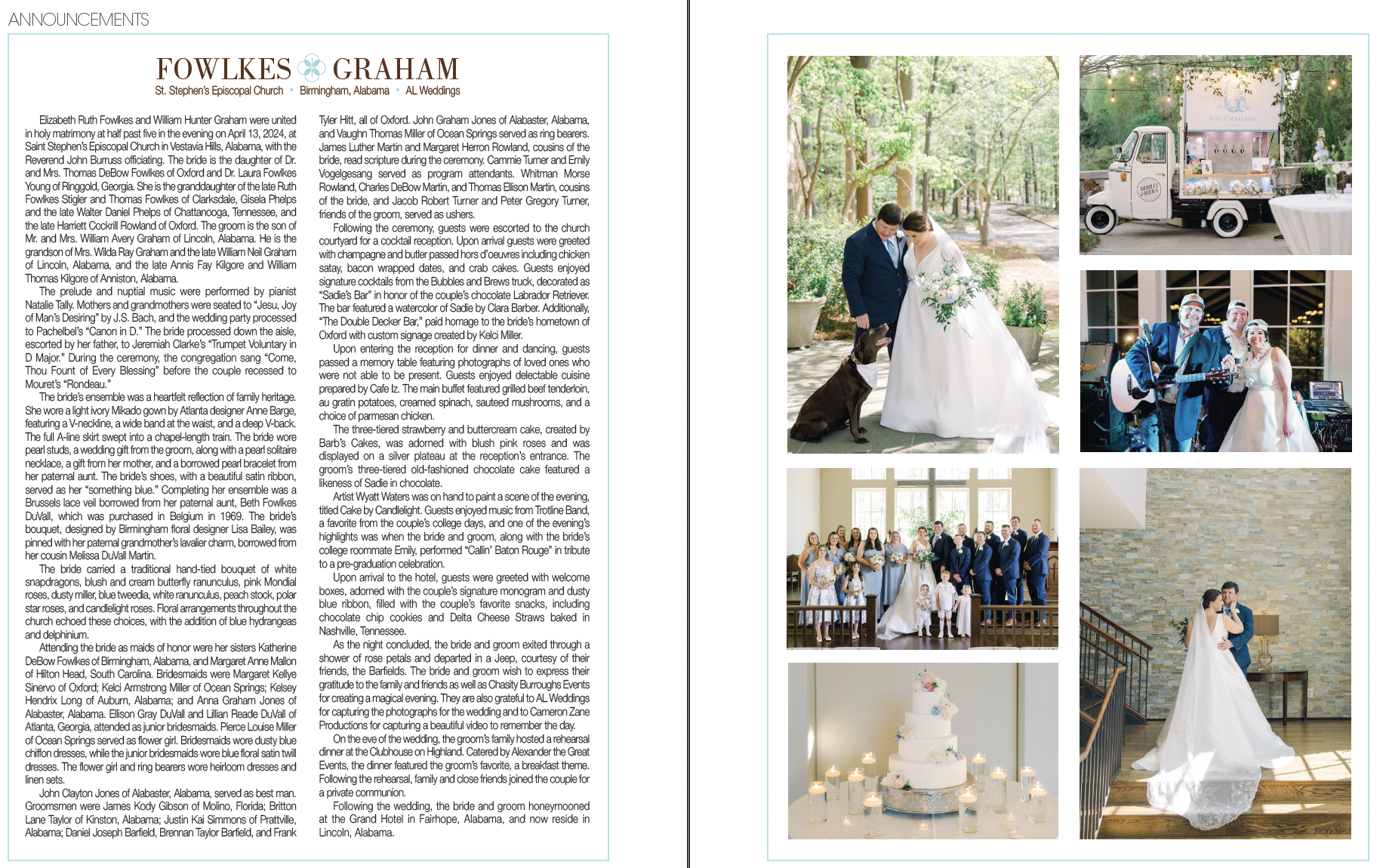 It’s time to reserve your pages in the Delta Magazine Wedding Issue and be a part of this long-standing Southern tradition! We are currently accepting submissions for one-page and two-page (visual and formal) announcements in the March/April 2026 issue. The deadline for submission is December 31, 2025.